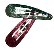 Materials: Hair Clips (new or old that snap) or Bobby Pins, Bright Colored & Clear Nail Polish, Glitter, Craft Glue, Buttons or Assorted Charms, Newspaper