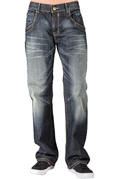Level 7 Mens Relaxed Bootcut Premium Jeans Whisker Handsand Wash Zipper Pocket