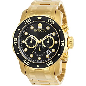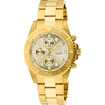 - 7 Invicta Men’s 0072 Pro Diver Collection Chronograph 18k Gold-Plated Watch, Gold/Black