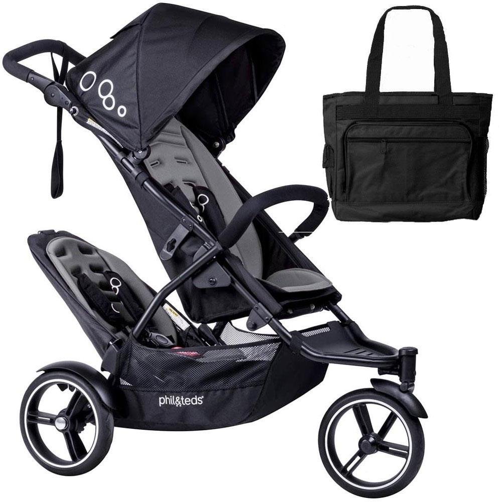 Phil Teds Dot Double Stroller with Second Seat with Diaper Bag - Graphite