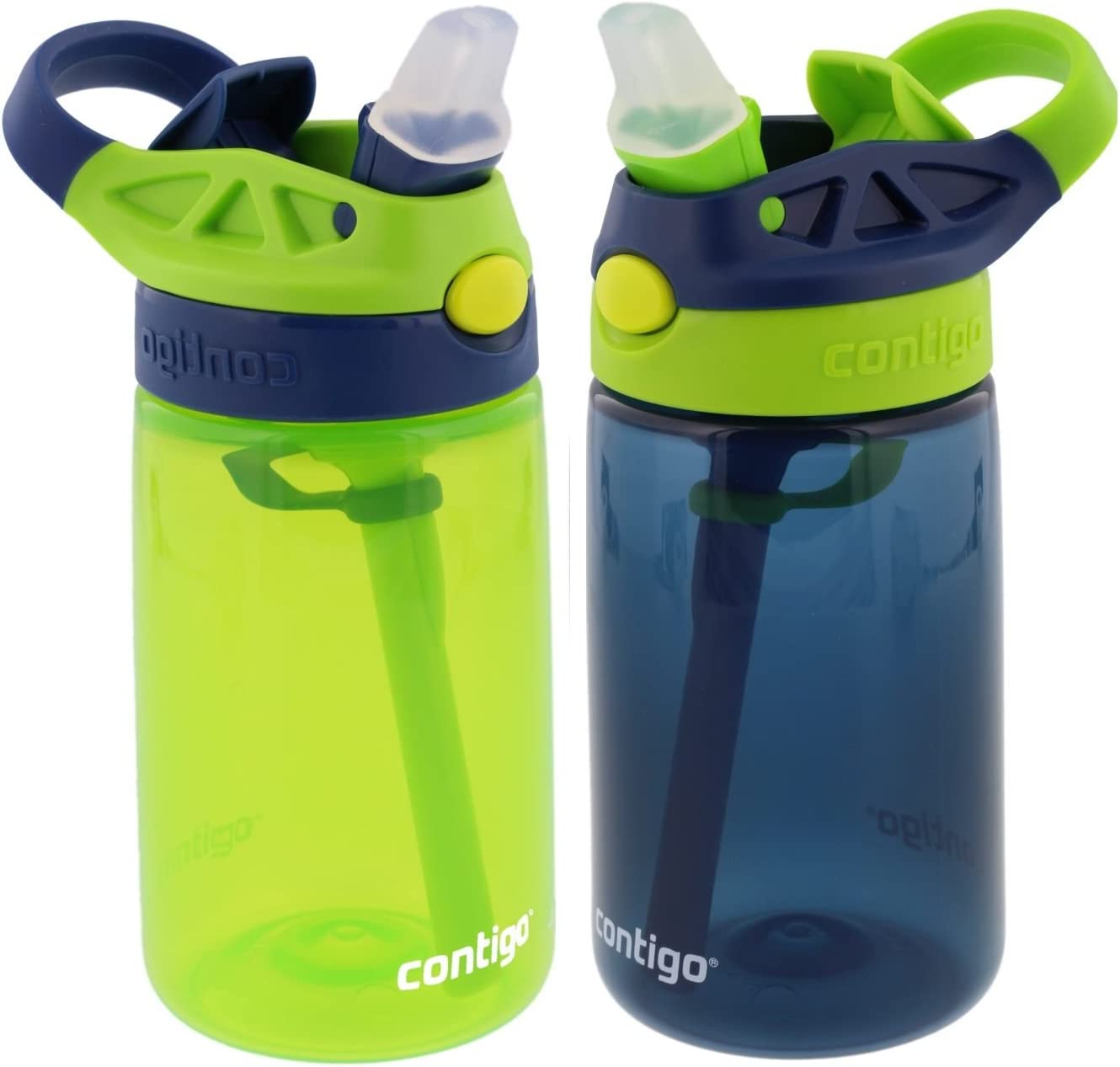 - 3 Contigo Kids Autospout Gizmo Water Bottle, 14oz (Chartreuse/Navy Blue) - 2 Pack